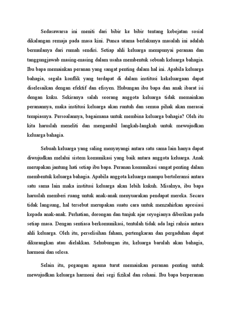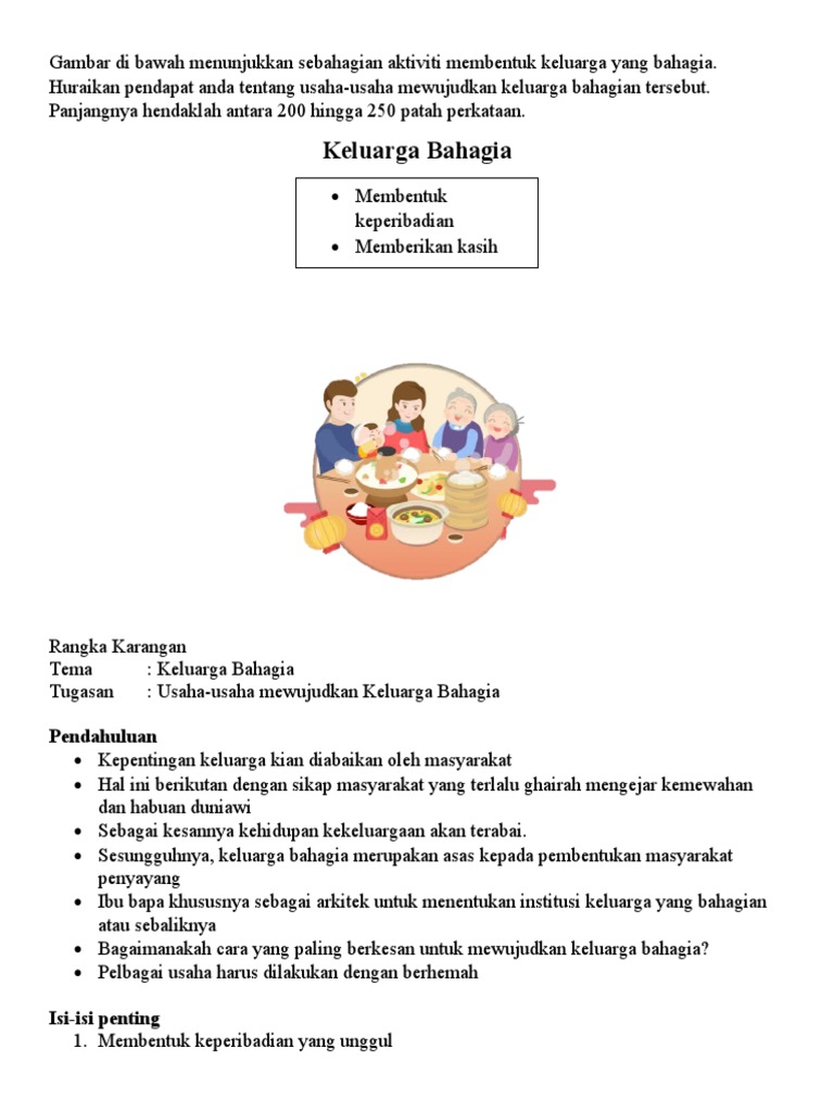1 Mewujudkan hubungan silaturahim dalam kalangan anggota keluarga setiap pasangan a Faktor Kebahagiaan Sesebuah Rumah Tangga b Kepentingan Membina Keluarga yang Bahagia c Contoh aktiviti membina keluarga yang bahagia d Cara pembubaran perkahwinan 2 Suami isteri hidup dalam keadaan berkasih sayang a Faktor Kebahagiaan Sesebuah Rumah Tangga. Peranan Ibu Bapa dalam Membentuk Keluarga Bahagia. Apabila bercakap dengan anak anda tetapkan apa yang salah apa yang betul agar anak anda belajar mematuhinya dan beri hukuman hanya bila perlu.